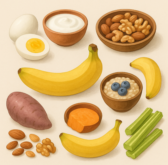- 추천 간식: 삶은 달걀 + 토마토 / 바나나 1개 / 요거트 1컵